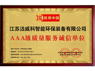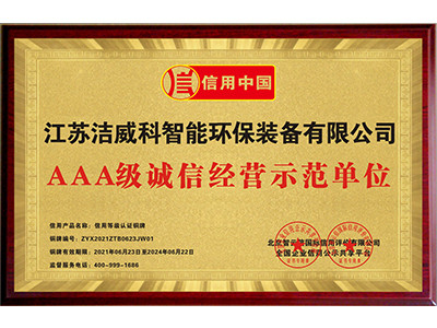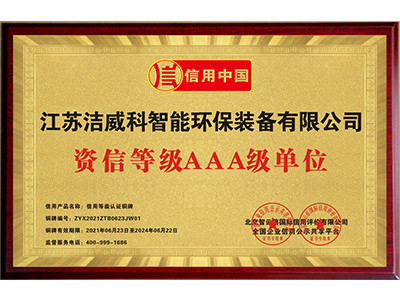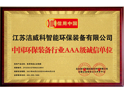 中国环保装备行业AAA级诚信单位